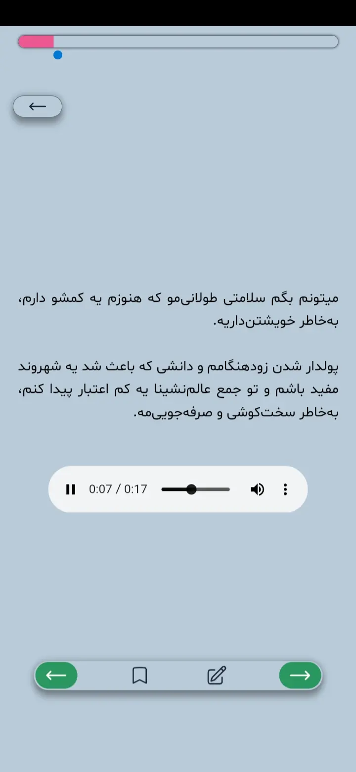 ما با ایجاد سیستم Micro-Flow Reading، کاری کردهایم که در هر لحظه فقط بخش کوچکی از متن برای مطالعه ظاهر میشود. این تجربهی پیشرفتهای کوچک مستمر را ایجاد میکند که باعث ایجاد استمرار و عادت میشود.