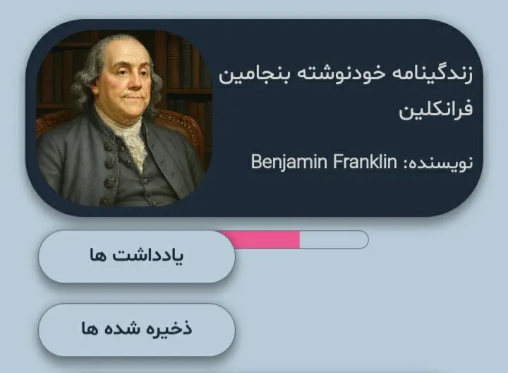 در زیر هر کتاب، درصدی از کتاب که توسط کاربر خونده شده، به صورت نموداری نمایش داده میشود.